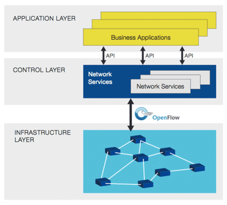 제어부에 있는 SDN Controller가 핵심인데, 여러 네트워크 장비와 통신할 수 있도록 API를 제공 및 추가할 수 있다. 또 여러 기능의 애플리케이션을 개발하고 다른 운영 도구와도 통신할 수 있게 API가 갖춰지기 때문에 확작성도 크기 때문에 하나의 네트워크를 여러 서비스에 동시에 각각의 서비스 전용으로 제공할 수 있게 된다.