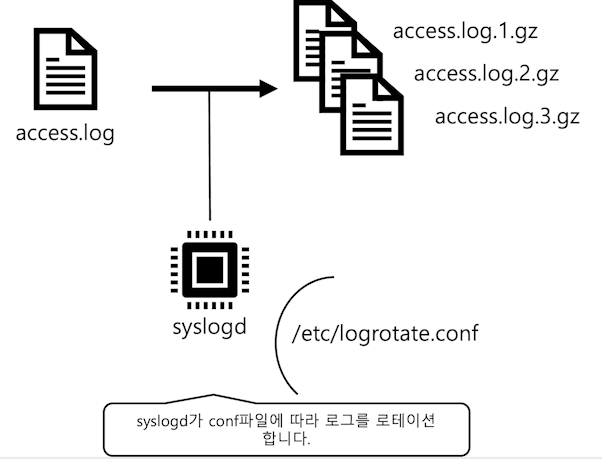 그래서 리눅스에서는 로그 로테이션이라는 기능을 사용하여 일정 조건이 되면 압축하여 별도로 저장하고 새로운 파일로 기록을 시작한다.