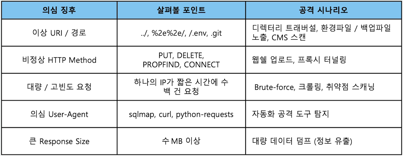 - 이 로그들을 통해 웹 기반 공격을 조기에 식별 할 수 있다.