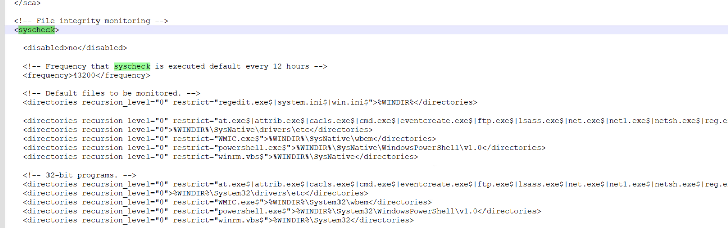 내려보면 syscheck 항목에서 FIM 기능을 설정하는 곳이다.