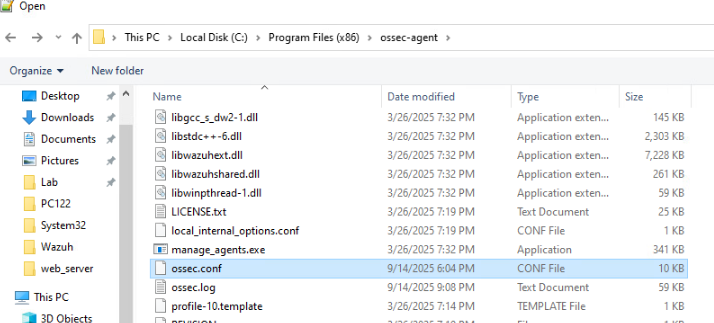 해당 경로의 ossec.conf를 notepad 관리자 권한으로 연다.